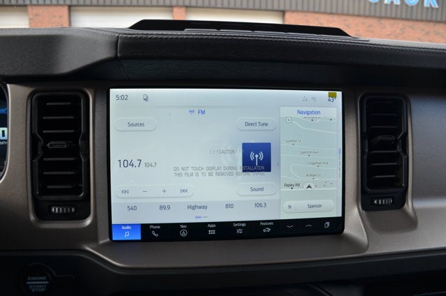 Delivers 21 Highway MPG and 19 City MPG! This Ford Bronco boasts a Twin Turbo Regular Unleaded V-6 2.7 L/164 engine powering this Automatic transmission. Wireless Phone Connectivity, Wheels: 18" Bright Machined Aluminum -inc: Black high gloss-painted, Voice Activated Dual Zone Front Automatic Air Conditioning.